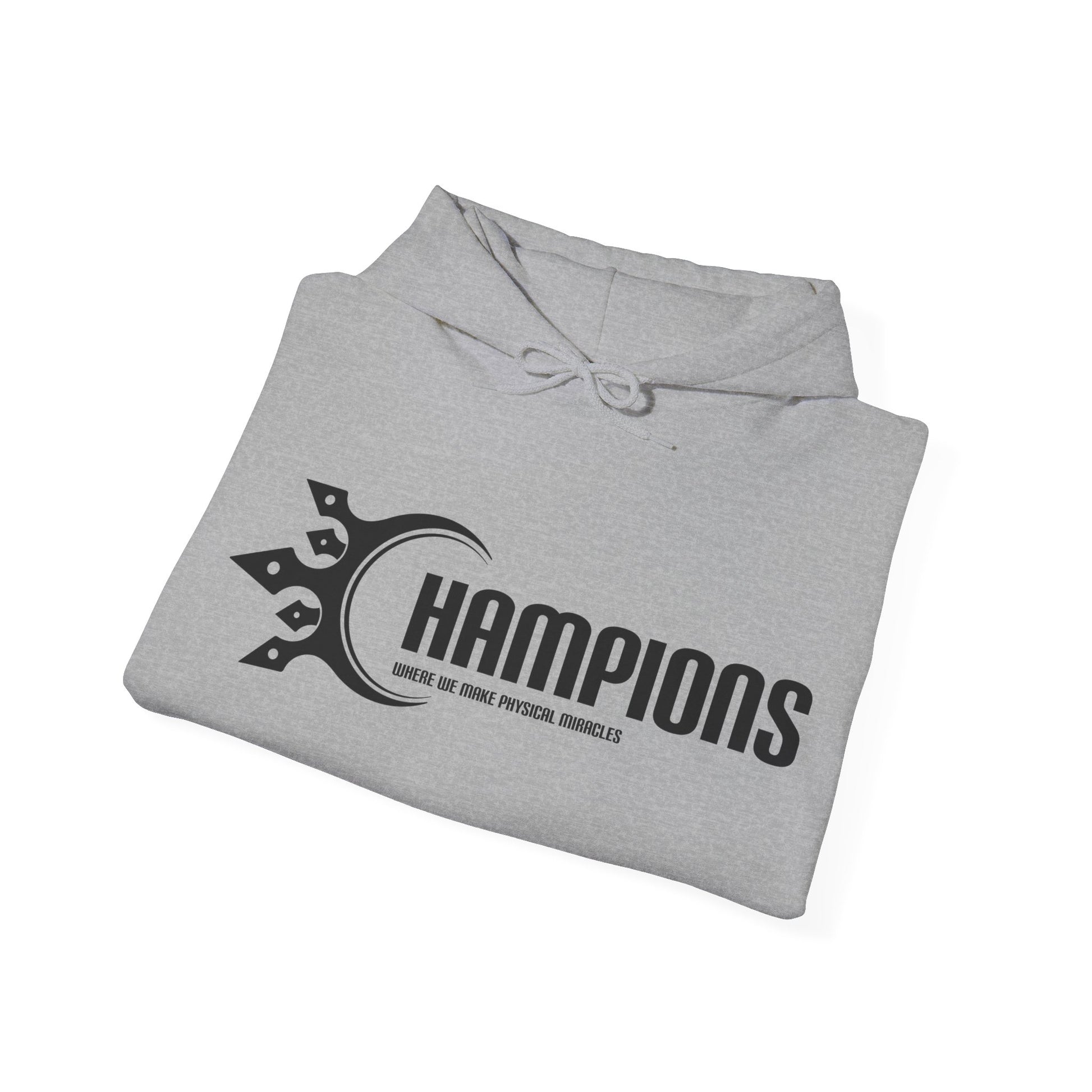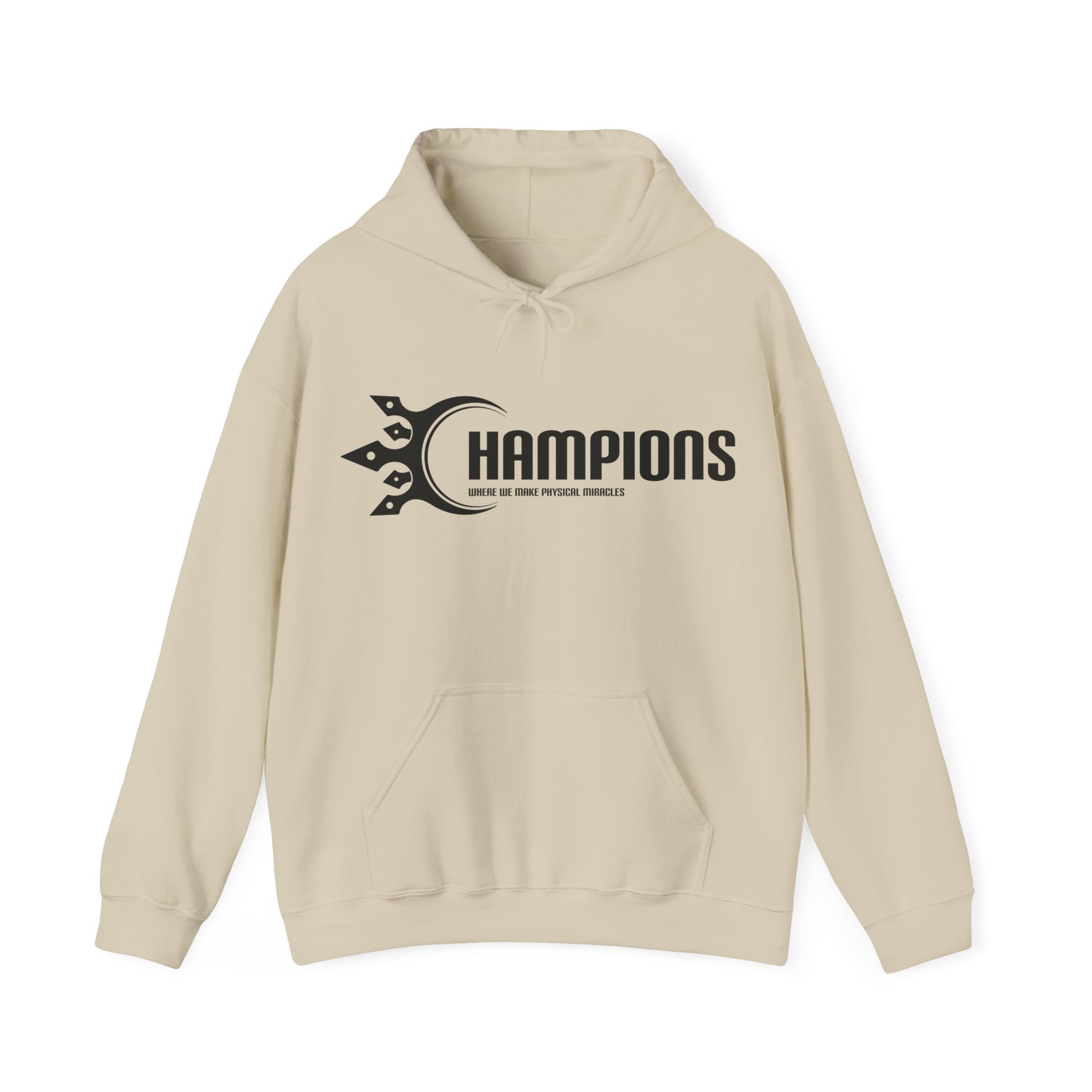 The Champions Fitness Hoodie is designed for peak performance and casual comfort. Crafted from a soft, breathable blend of cotton and polyester, this hoodie is perfect for workouts and everyday wear. The fabric wicks away moisture, keeping you dry and comfortable during intense sessions. It features a sleek, athletic fit that contours to your body without restricting movement. The adjustable drawstring hood provides extra coverage and warmth, while the kangaroo pocket offers convenient storage for essentials. Finished with the Champions Fitness logo on the chest, this hoodie embodies both style and functionality, making it a must-have for any fitness enthusiast.